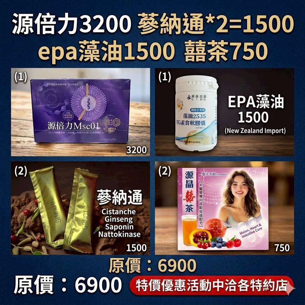 快速升級 源倍力,epa藻油,參納通 囍茶 原價6900特價5000 拼團3組贈源倍力1盒 升本店SVIP